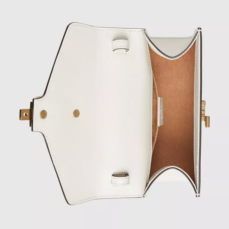 【世界のファッショニスタを魅了する新作バッグ】 美しいトップハンドルフォルムの〔シルヴィ〕 ミニ バッグ。グッチならではのモダンなディテールと上品でレディライクなストラクチャーの組み合わせが特徴的な〔シルヴィ〕は、グッチには欠かせないアイコニックバッグのひとつです。ファブリックに埋め込まれたナイロンのウェブをゴールドチェーンとバックルが飾り、エレガントな印象を高め、メタル バックル クロージャーはグッチのアーカイブにヒントを得たもので、ここではウェブ ストライプとの組み合わせで作品に遊び心を演出しています。丈夫なスムースレザーを使用しています。