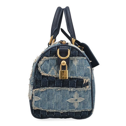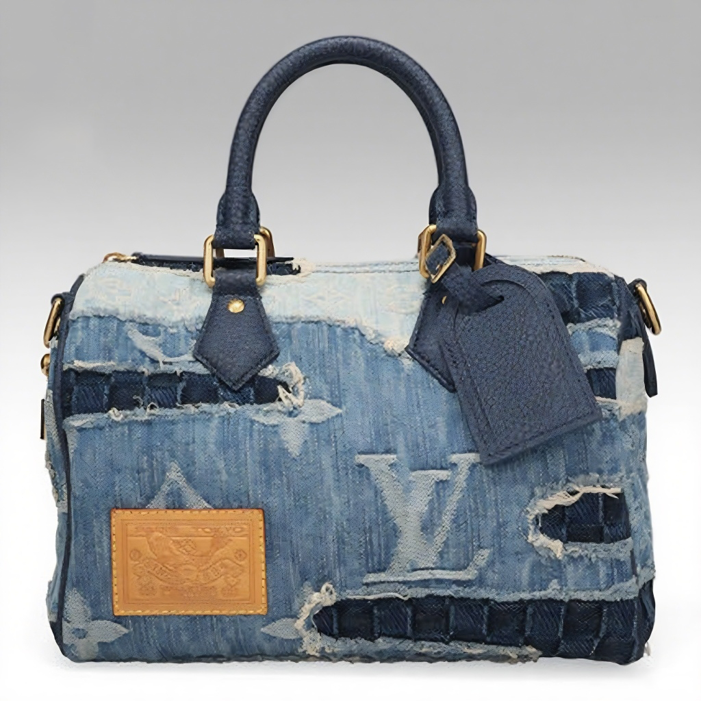ダミエデニムとモノグラムパターンを組み合わせたパッチワークデザイン